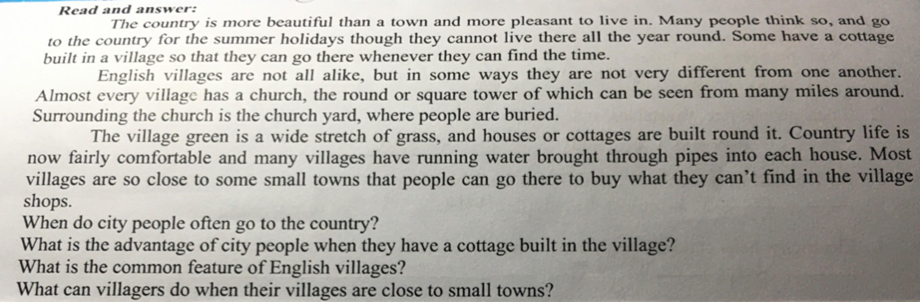 to the country for the summer holidays though they cannot live there all the year round. Some have a cottage