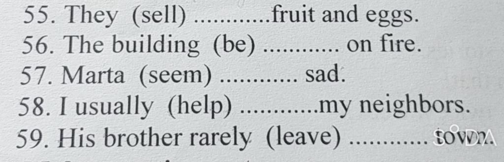 55. sell (thì hiện tại đơn chủ ngữ they- chia theo chủ ngữ số nhiều-> giữ nguyên)