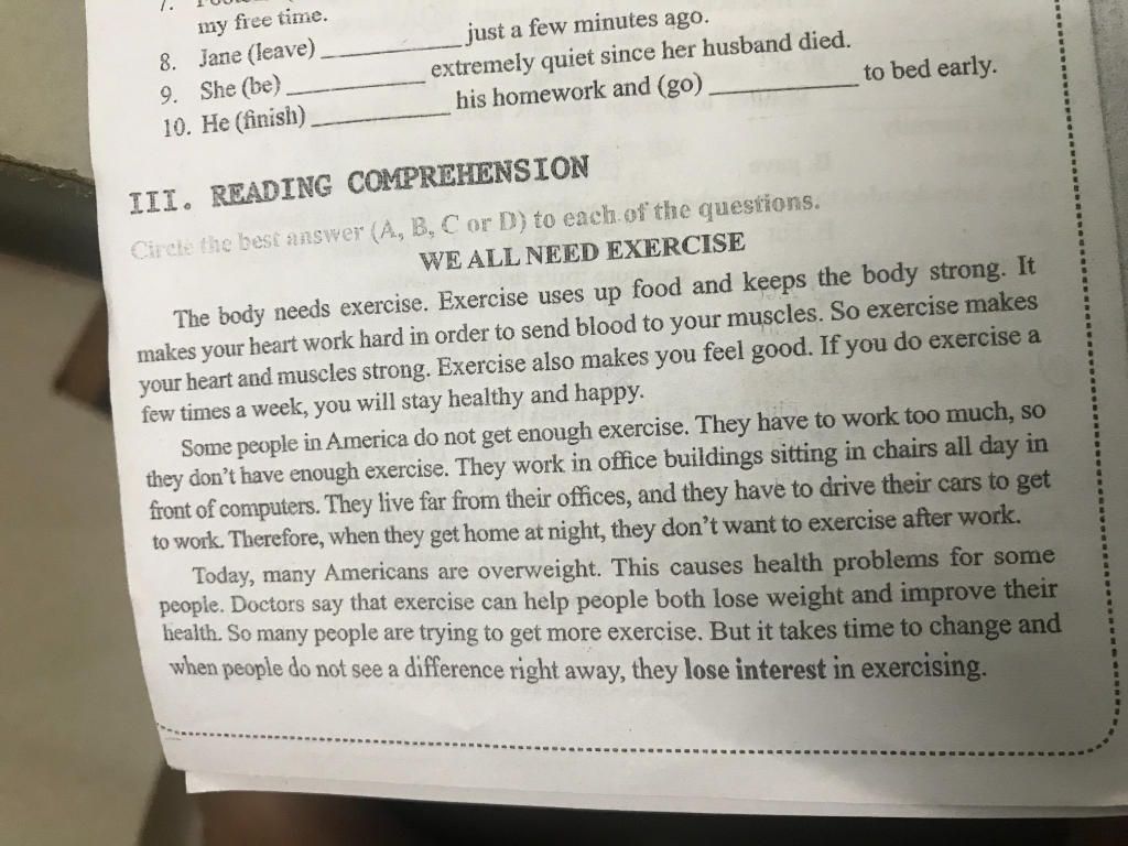 2. D. Many people don't want to get exercise after work because they are lazy.