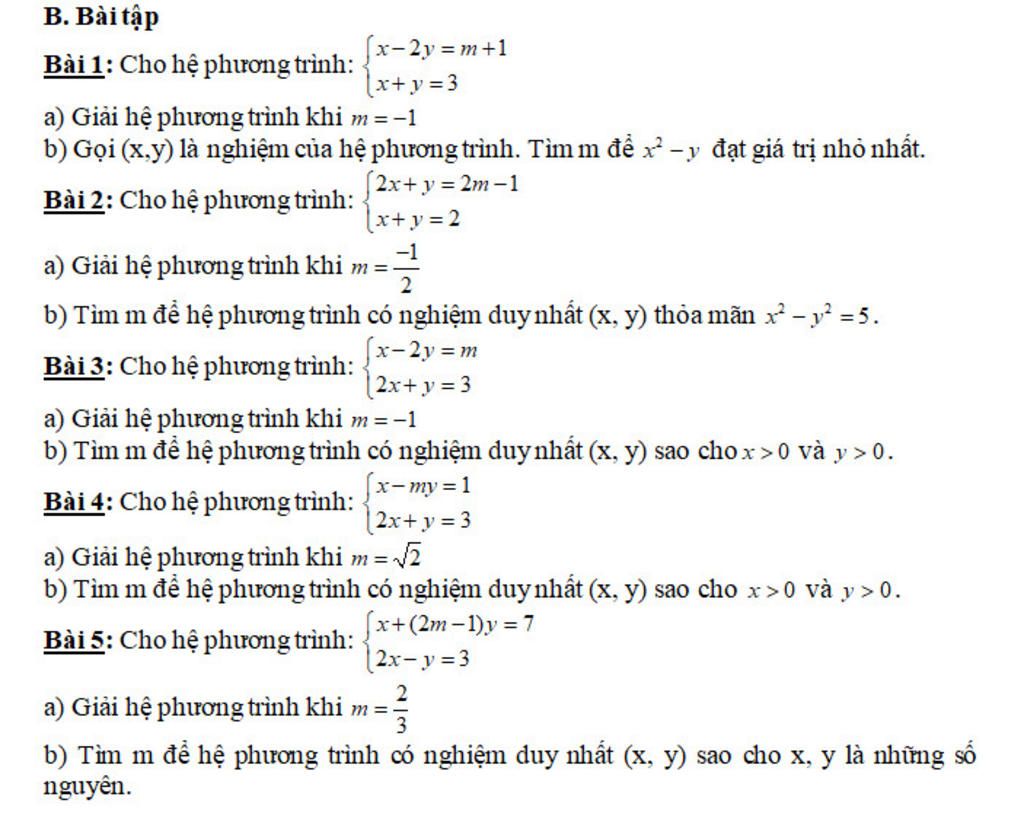 Bài 2: Cho hệ phương trình: