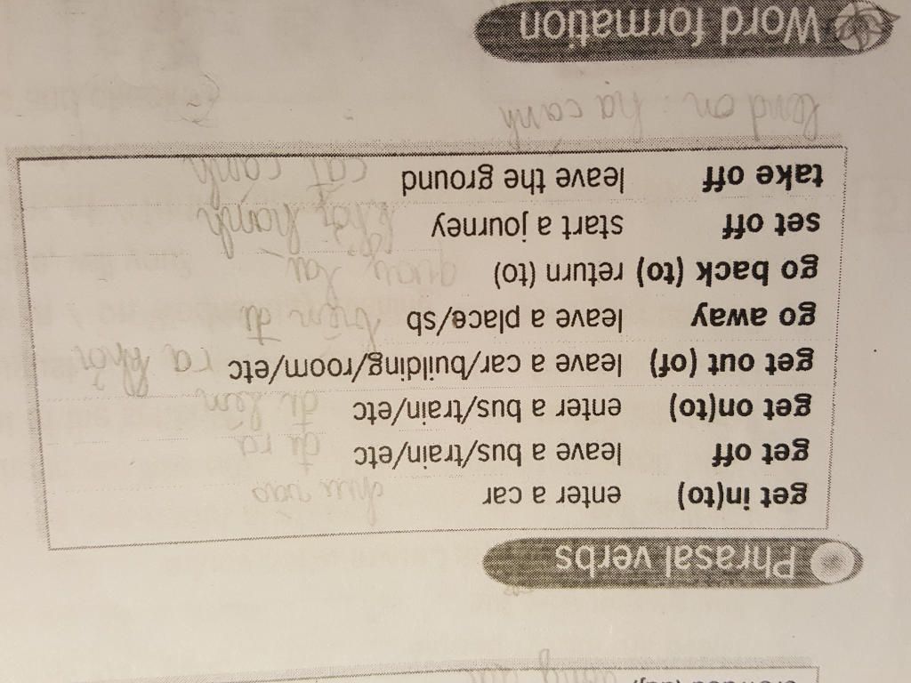 Get out (of): I’ll get out at the end of the road and walk from there.