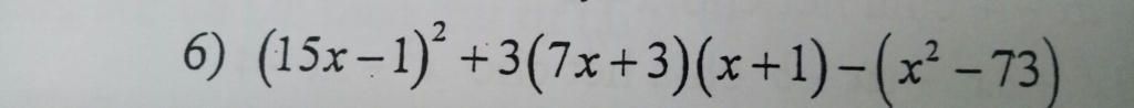 `(15x-1)^2+3(7x+3)(x+1)-(x^2-73)`