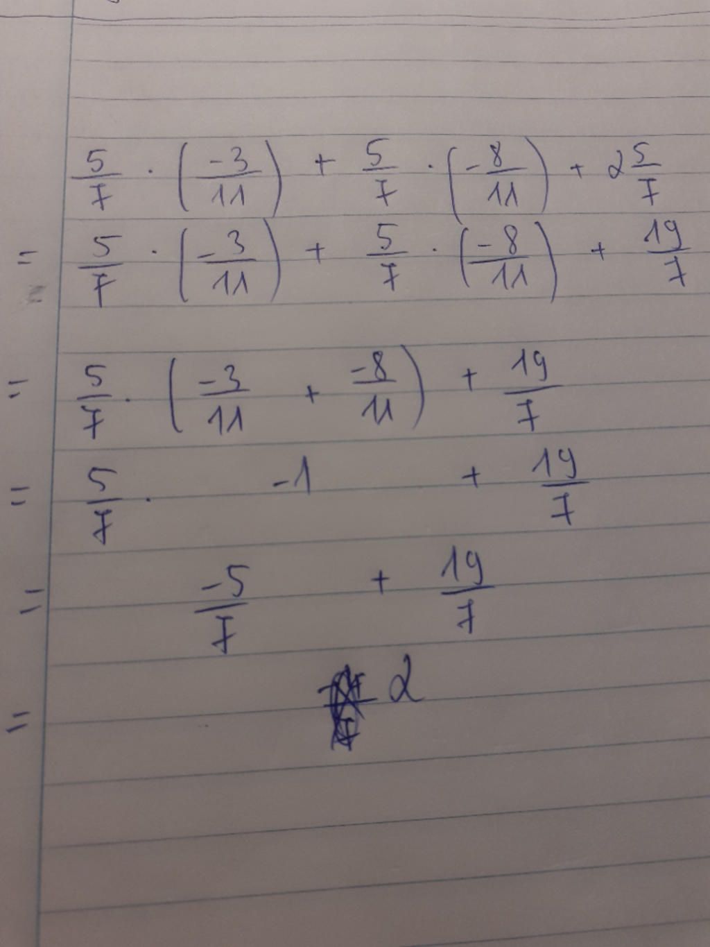 `5/7.(-3/11)+5/7.(-8/11)+2 5/7`