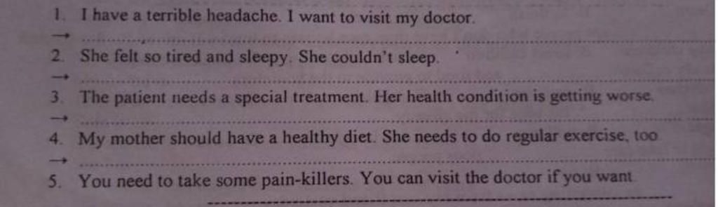 1.I have a terrible headache so I want to visit my doctor.