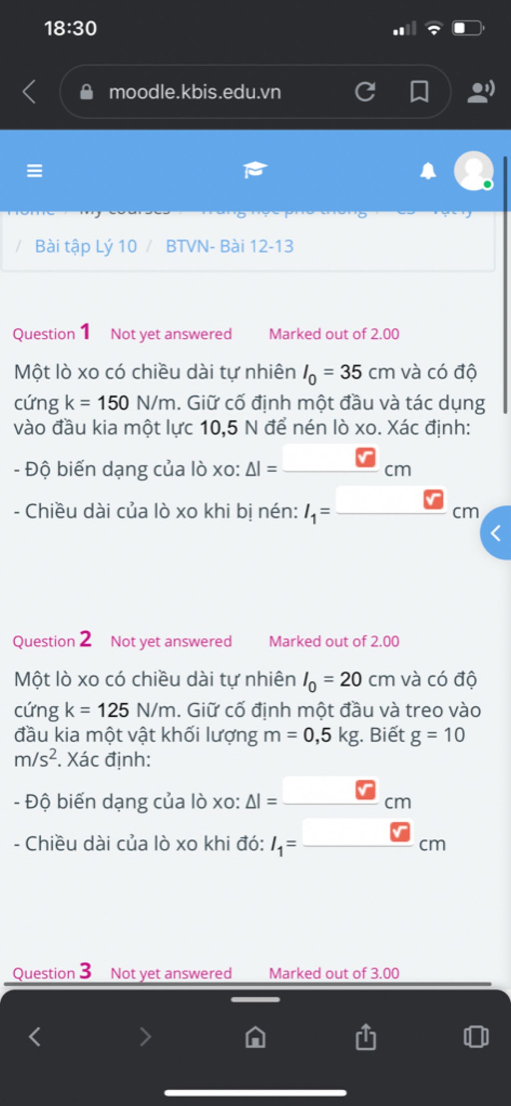 Chiều dài lò xo khi bị nén là: