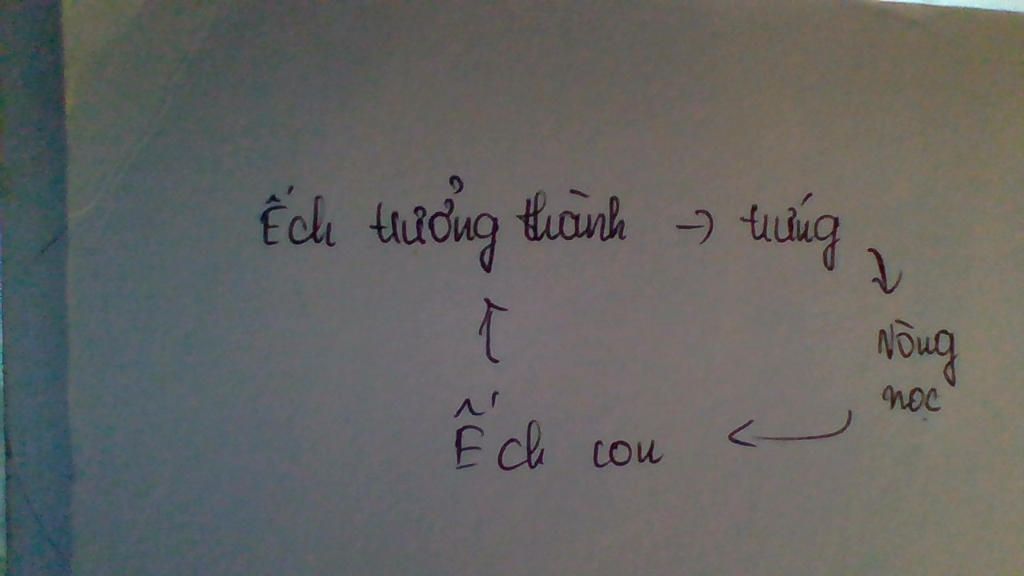 Trứng đã thụ tinh→nòng nọc→ếch con→ếch trưởng thành.