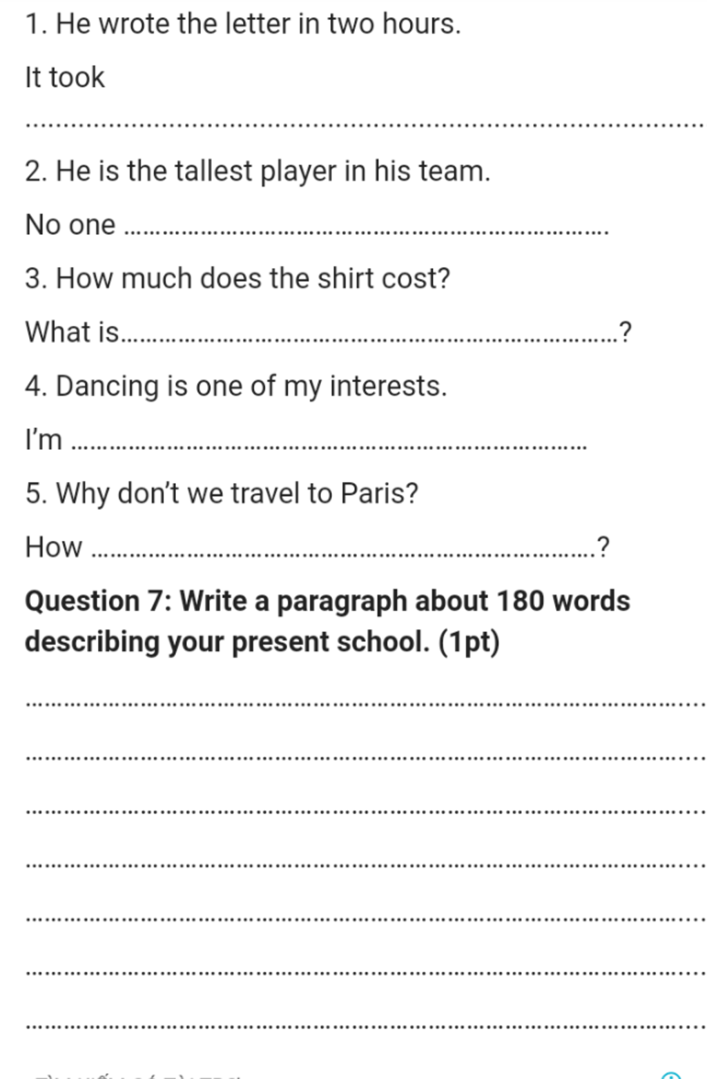 1. He wrote the letter in two hours => It took him two hours to write the letter.