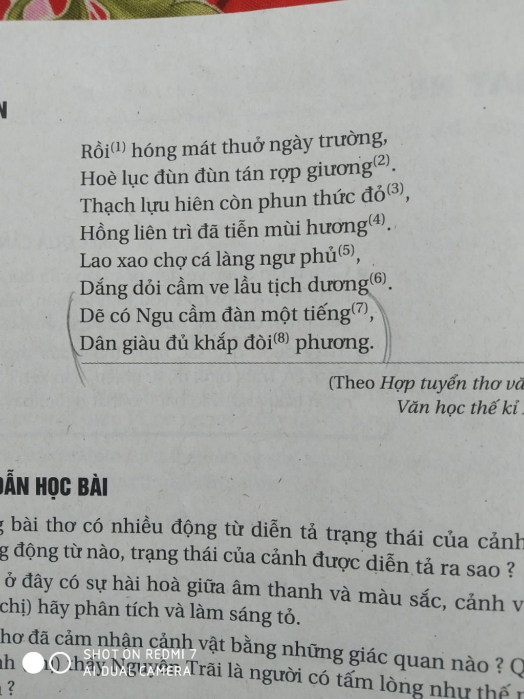 Ở đây ta thấy xuất hiện mong ước của tác giả là mong " dân giàu đủ" cuộc sống của người dân ngày càng ấm no, hạnh phúc là điều mà Nguyễn Trãi từng canh cánh và mong ước. Ở đây, ta thấy tác giả nói đến đến Ngu cầm . Vua Thuấn có một khúc đàn "Nam Phong" khảy lên để ca ngợi nhân gian giàu đủ, sản xuất ra nhiều thóc lúa ngô khoai. Chính vì vậy tác giả muốn có một tiếng đàn của vua Thuấn lồng vào đời sống nhân dân để ca ngợi cuộc sống của nhân dân ấm no, vui tươi, tràn đầy âm thanh hạnh phúc. Ước mơ ấy của Nguyễn Trãi như làm nổi bật tình yêu nước, yêu dân tha thiết của tác giả. Mong ước muôn đời của Nguyễn Trãi là dân chúng được ấm no, hạnh phúc.