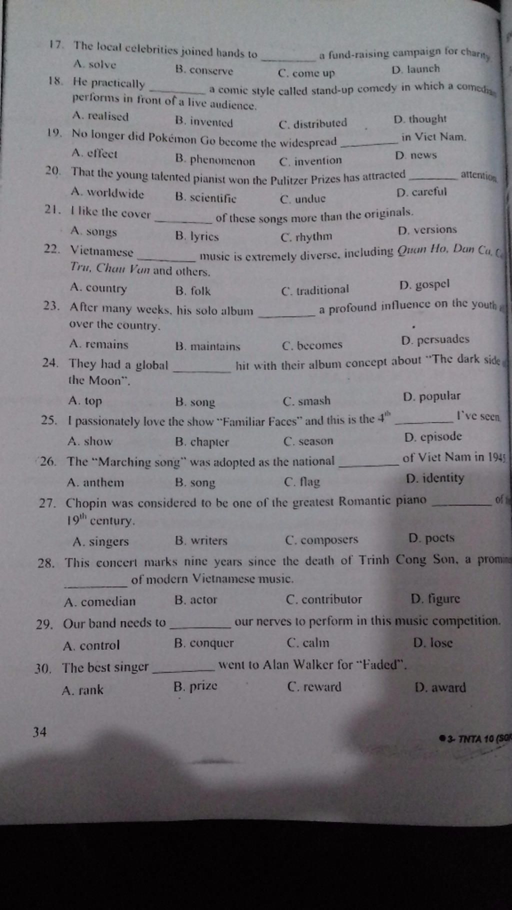 Exercise 5. Mark the letter A, B, C or D to indicate the correct answer to each of the following questions.