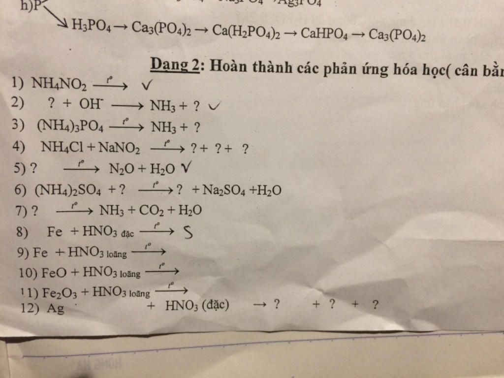 \(2{(N{H_4})_3}P{O_4}\xrightarrow{{{t^o}}}6N{H_3} + 2{H_3}P{O_4}\)