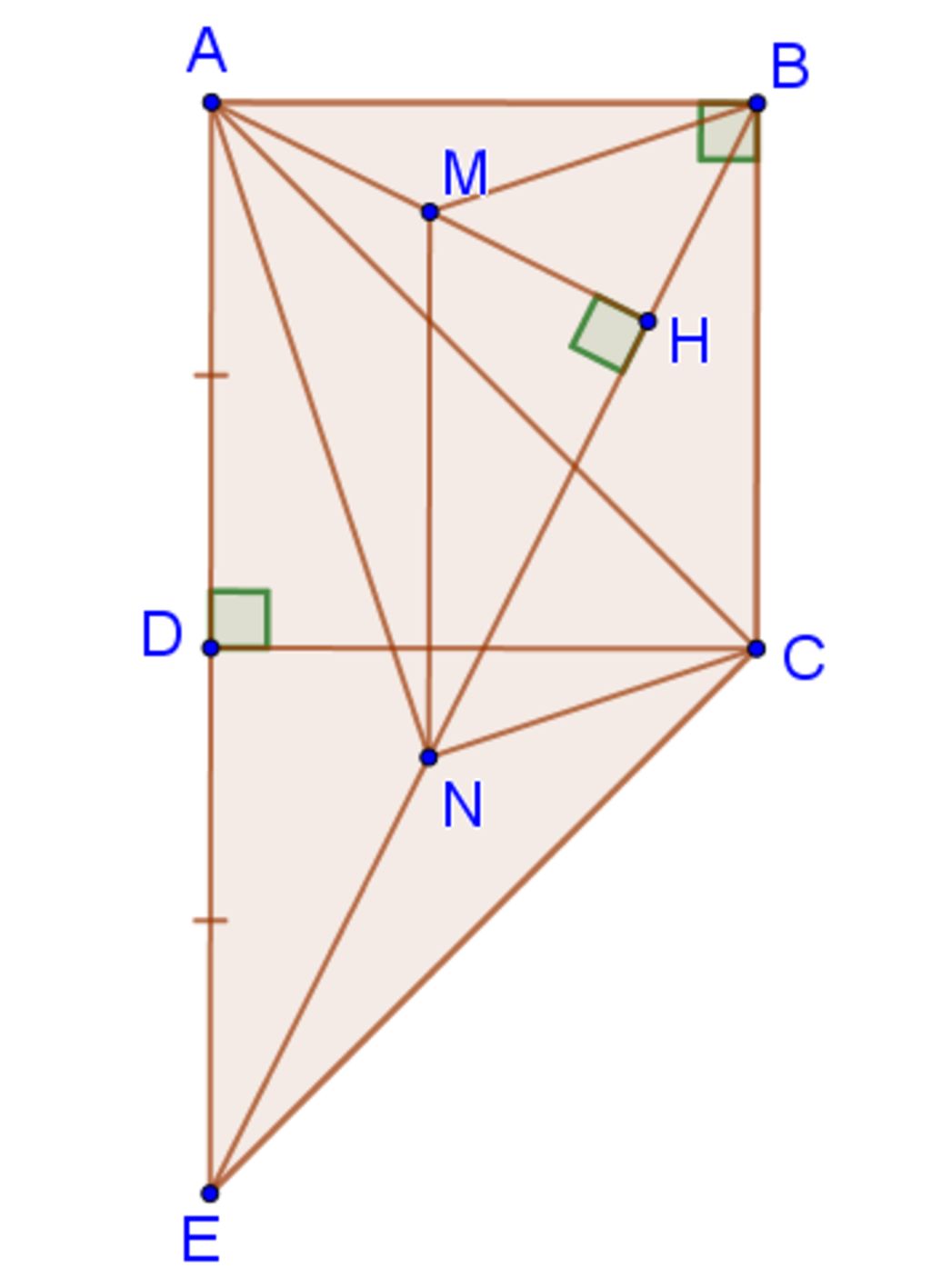 Do đó $MN//AE$ và $MN=\dfrac{1}{2}AE$