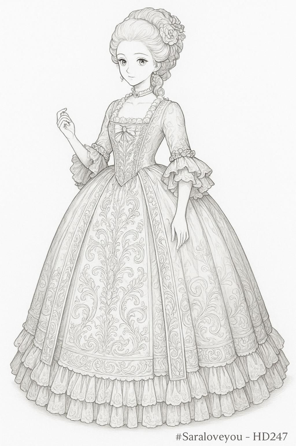 `*` Layer hoa văn và chi tiết (Detail Layer): Bao gồm hoa văn tinh xảo trên váy, nếp gấp vải, ren và phụ kiện, tách riêng để chỉnh sửa mà không ảnh hưởng màu cơ bản.