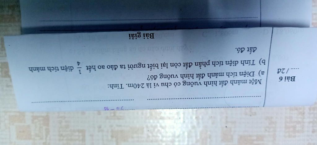 a) Cạnh của mảnh đất hình vuông đó là : 240 : 4 = 60(m)