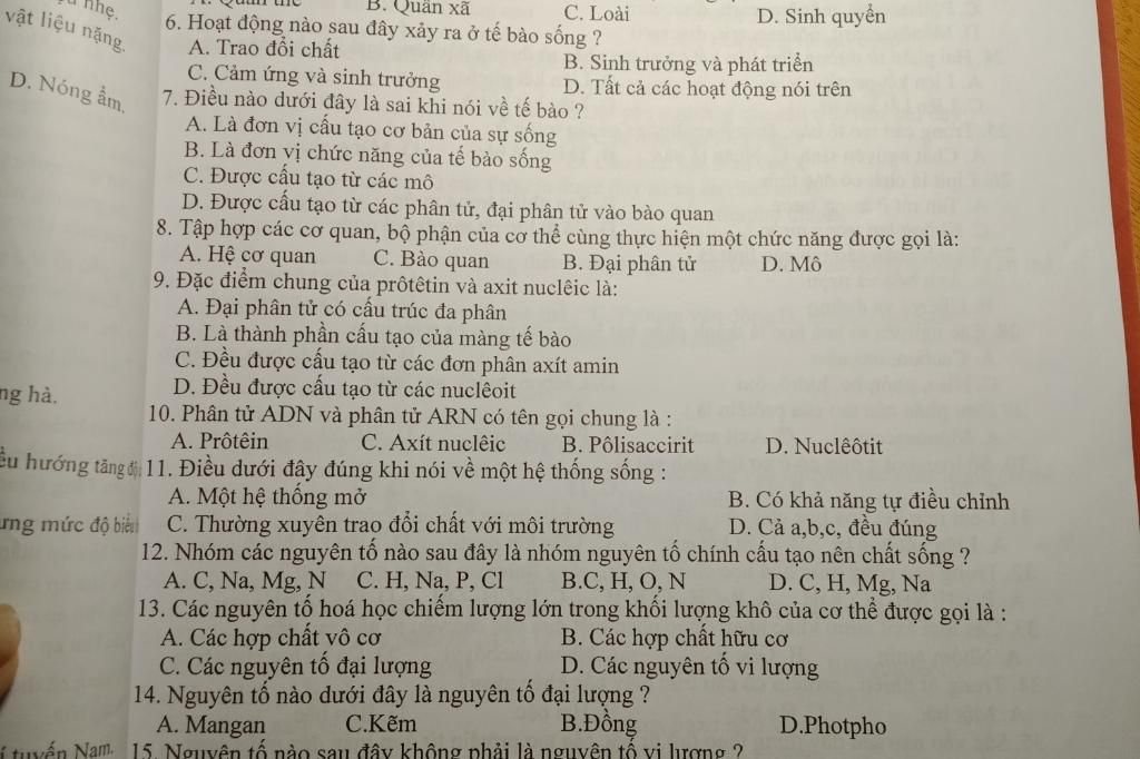 6. Hoạt động nào sau đây xảy ra ở tế bào sống ?