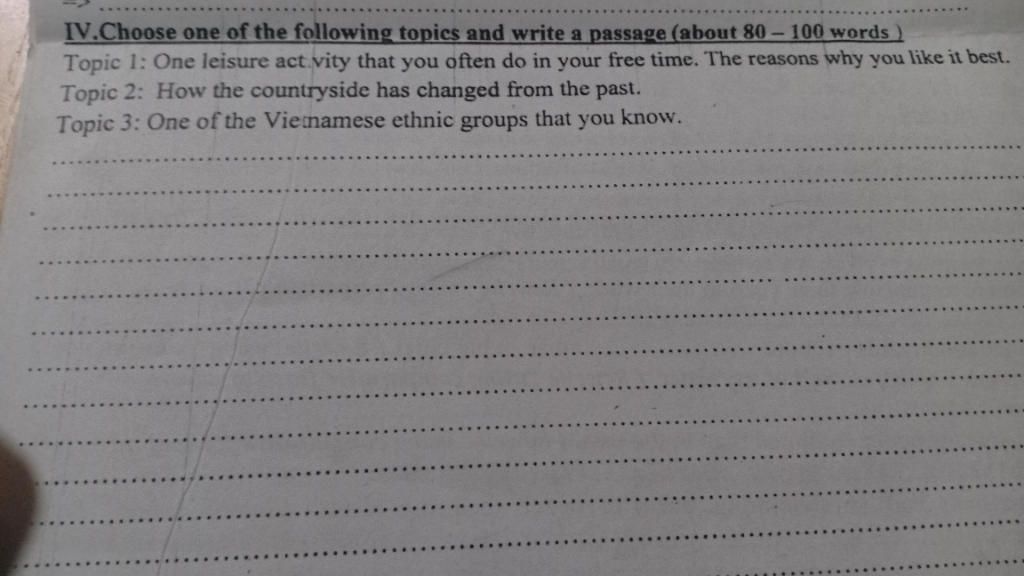 My favourite leisure activity is reading books. I like do it in my spare time. I love doing it because it’s useful and interesting. It’s useful because you can find a lot of knowledge of all areas that you need, interesting because the books give you the joy and help you relax after the tired day. I like reading “Crayon Shin-chan” the best. It’s an action comics about the main character being Shinnosuke Nohara, a 5-year-old boy lives in a family has 4 people. His dad is Nohara Hiroshi – a manager of a company, mother is Misae-a housewife and his baby sister name is Himawari. The content is about his adventure stories with his family, a dog Bach Tuyet, his friends, his teacher, neighbour and other people include the strange people. This story takes in my simple place likes park, house, school, street, post office, ... Sometimes, he is naughty and makes her mom angry but he’s so kind so the comics more fun and fun. I love reading because it help me know more about the life, the animal,... I love reading so much.