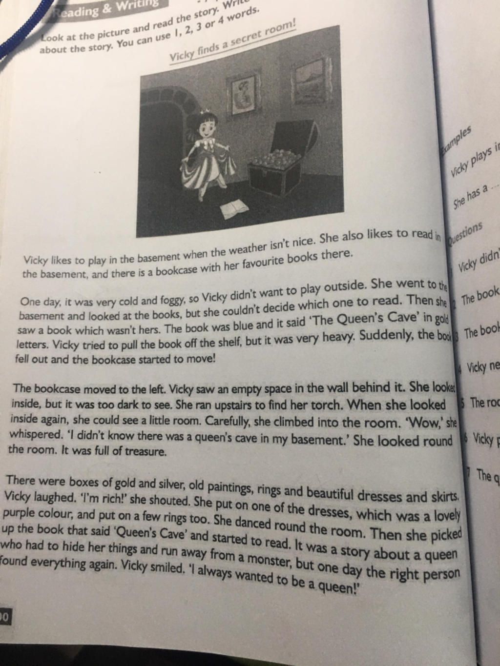 Vicky likes to play in the basement when the weather isn't nice. She also likes to read i