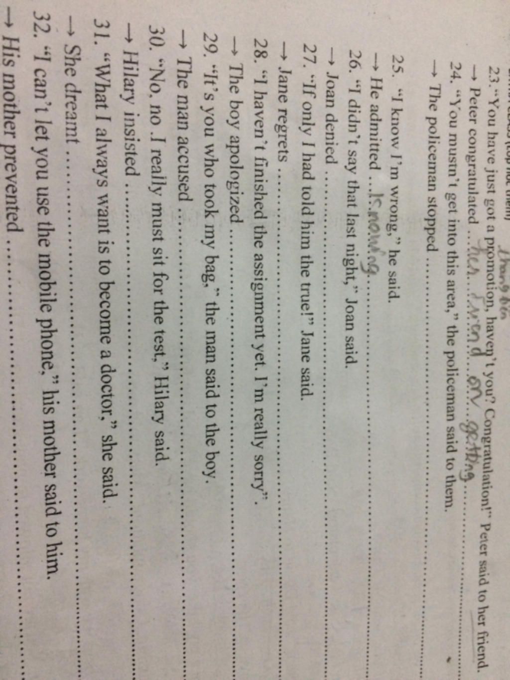 `text{23. Peter congratulated her friend on getting a promotion.}`