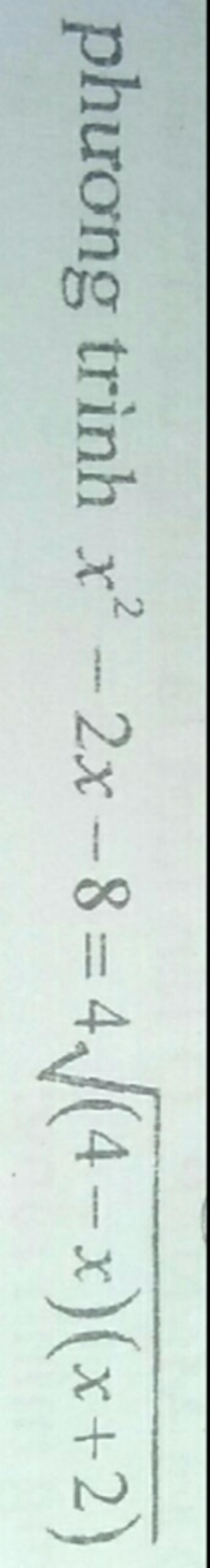 $x^2-2x-8=4\sqrt{(4-x)(x+2)}_{}$ $ĐKXĐ:_{}$ $-2_{}$ $\leq$ $x_{}$ $\leq4$