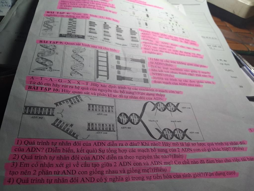- Sau khi được tách ra, các nuclêôtit trên mạch đơn lần lượt liên kết với các nuclêỏtit tự do trong môi trường nội bào theo nguyên tắc bổ sung (A-T, G-X) để tạo mạch mới.
