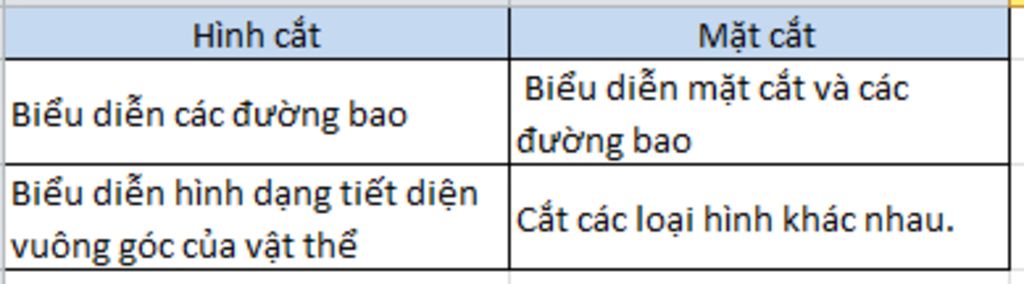 – Hình biểu diễn các đường bao của vật thể nằm trên mặt phẳng cắt gọi là mặt cắt.