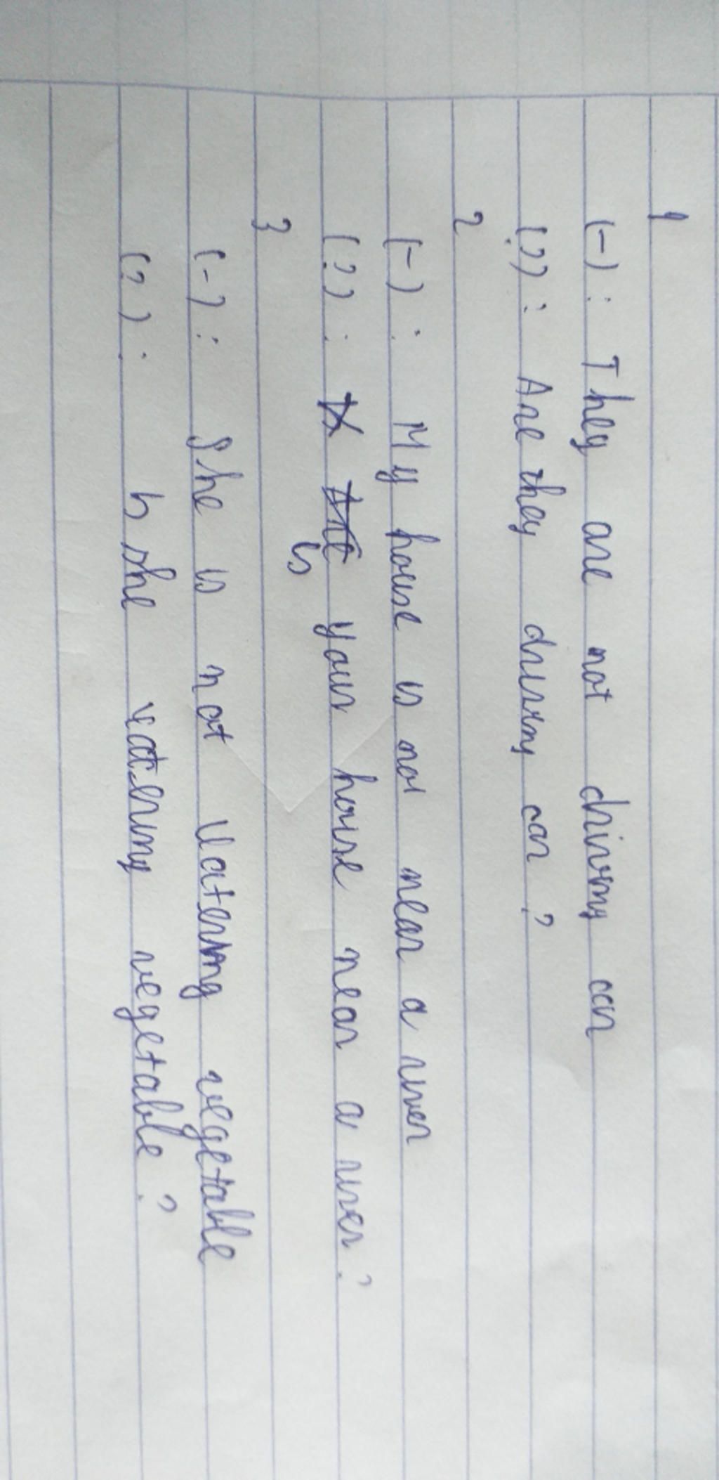 Câu phủ định: They aren't driving car.