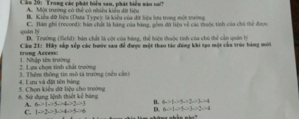 Câu 20: Trong các phát biểu sau, phát biểu nào sai?