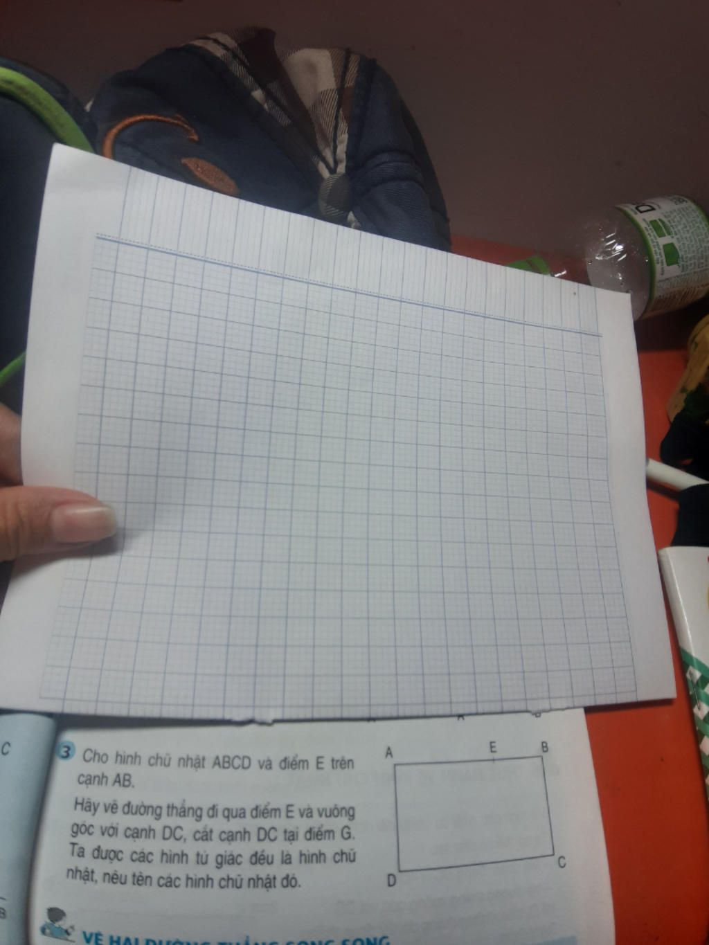 Áp dụng cách vẽ đường thẳng đi qua một điểm và vuông góc với đường thẳng cho trước, ta vẽ đường thẳng EG Như sau: