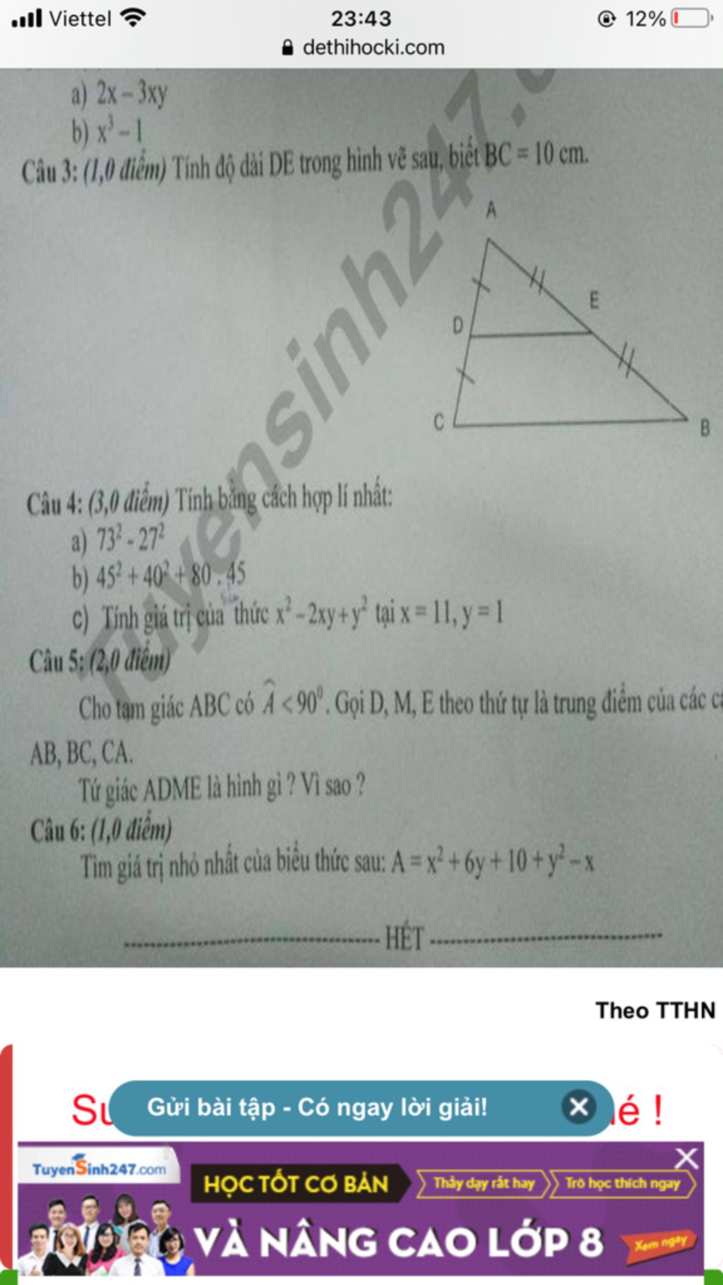 =>ME là đường trung bình tam giác BCA