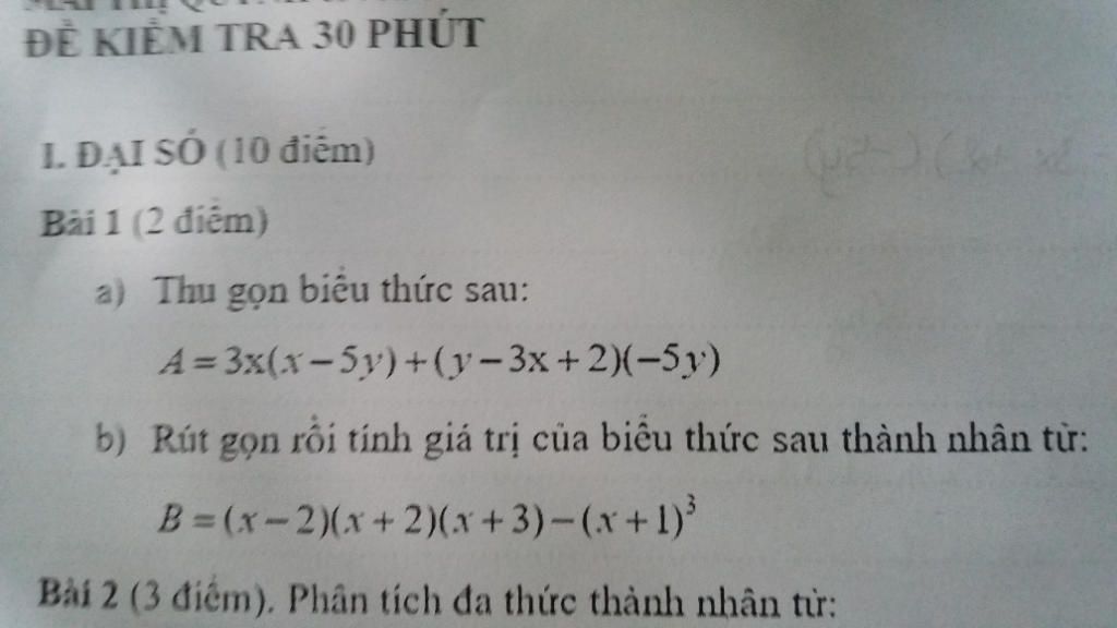 $a. A= 3x(x-5y)+(y-3x+2)(-5y)$