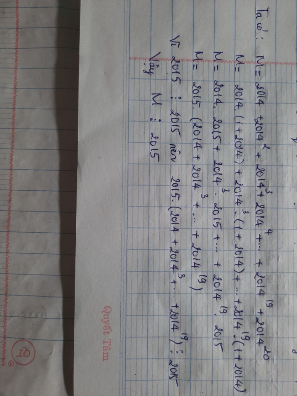 M = 2014 . ( 1 + 2014 ) + 2014 ³ . ( 1+ 2014 ) + ... + 2014 19 . ( 1 + 2014 ²0 )