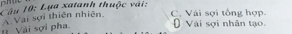 Đáp án là câu C . Vải sợi tổng hợp