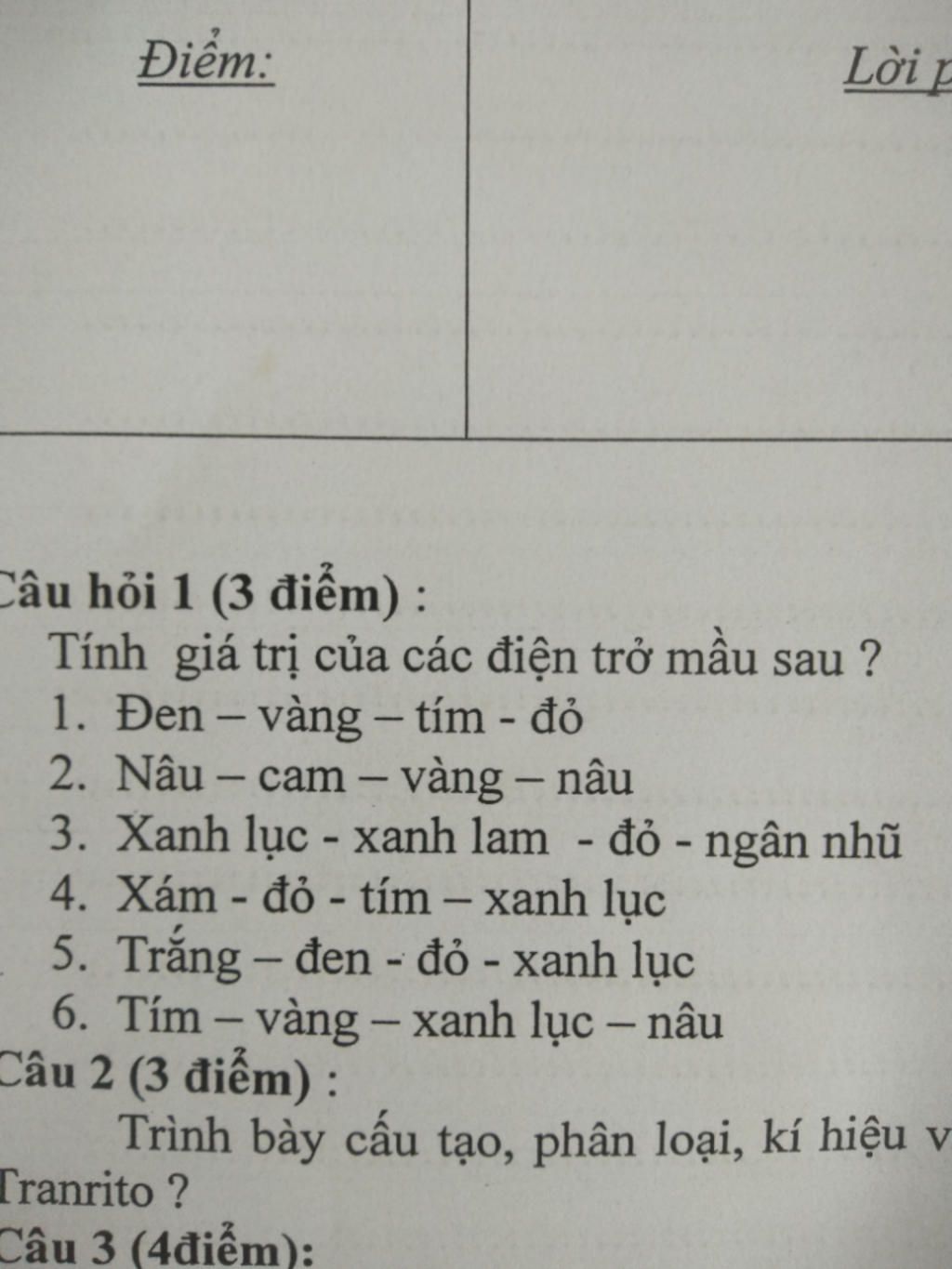 Tính giá trị của các điện trở mầu sau ?