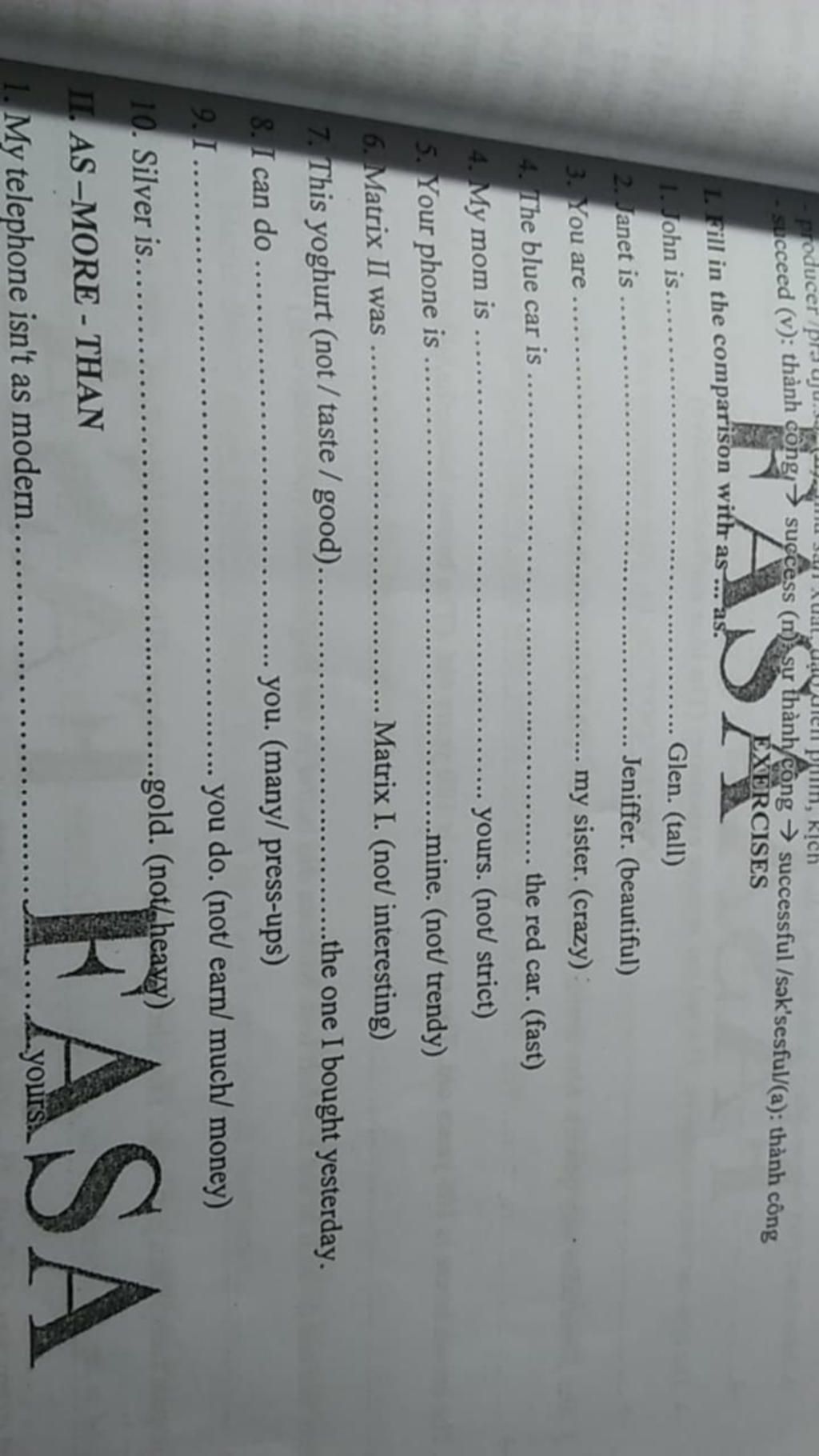 8. This yoghurt is not as taste good as the one I bought yesterday
