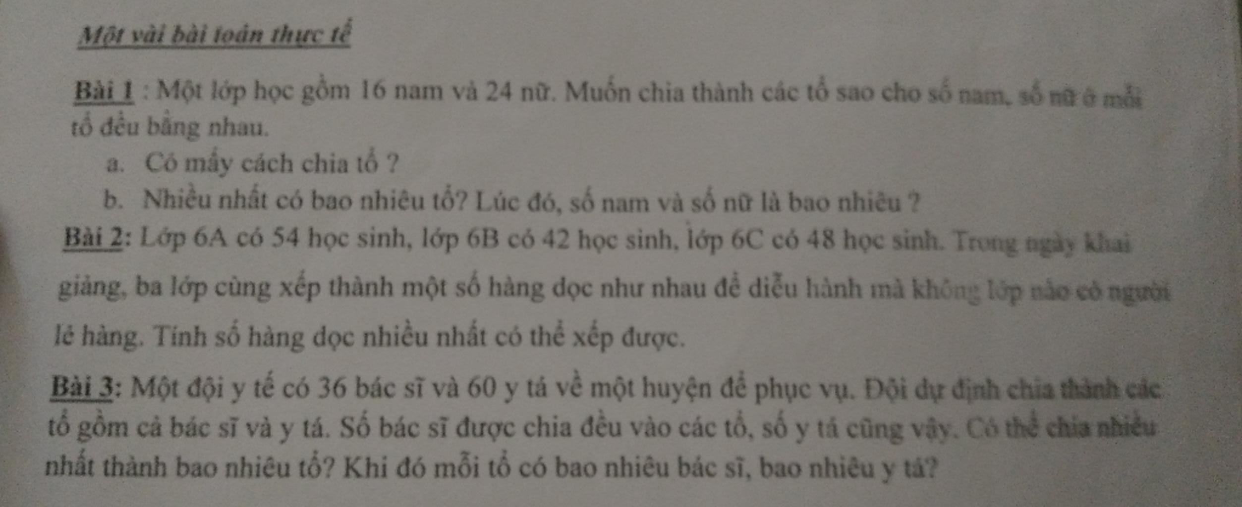 Gọi số học sinh của các tổ là x (x€N*)