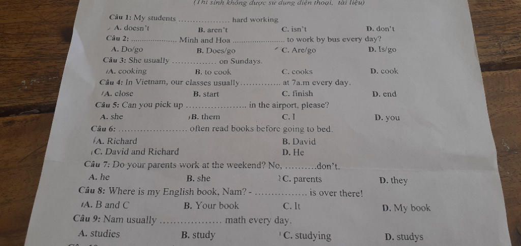 (Thi sinh không dược su dụng diện thoại, tài liệu)