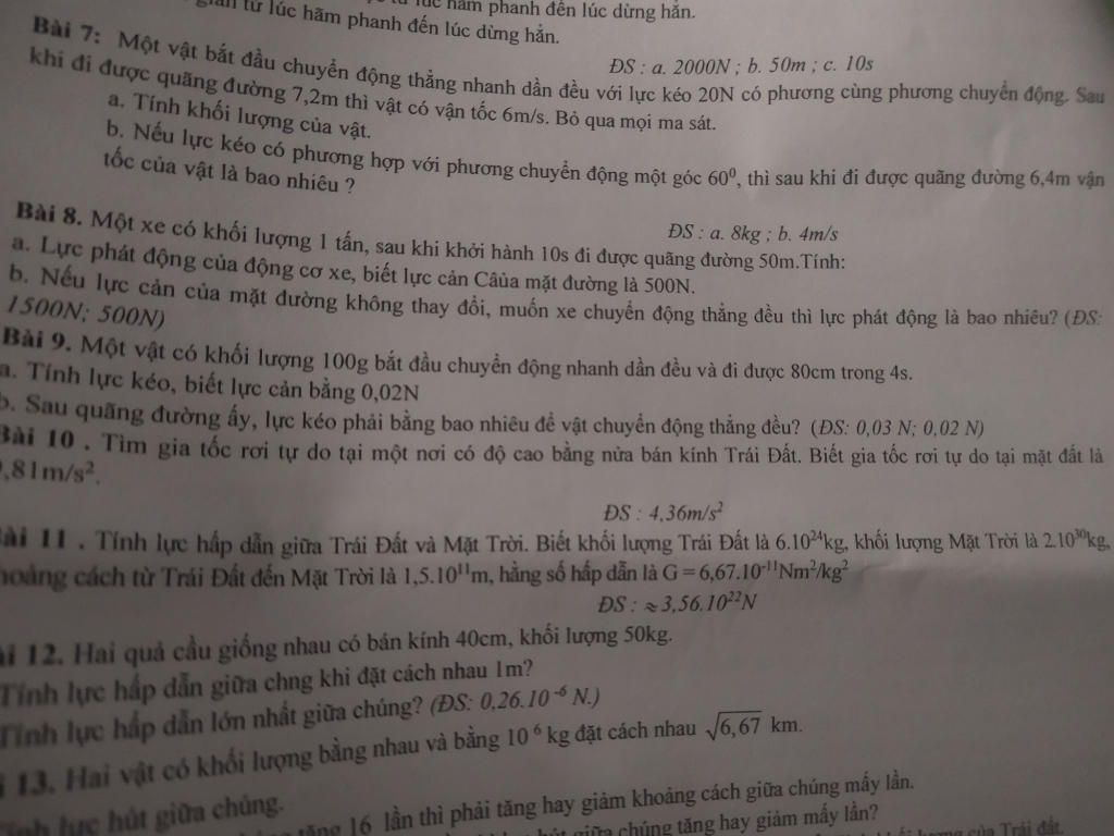 \(a = \dfrac{{F\cos 60}}{m} = \dfrac{{20.0,5}}{8} = 1,25\left( {m/{s^2}} \right)\)