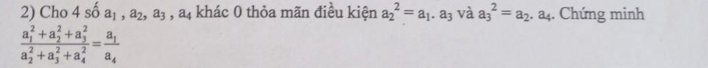Mặt khác `a_1 / a_4 = (a_1 / a_4 )^4 = a_1 / a_4 * a_1 / a_4 *a_1 / a_4*a_1 / a_4= a_1 / a_2 * a_2 / a_3 *a_3 / a_4= a_1 / a_4 ` (1)