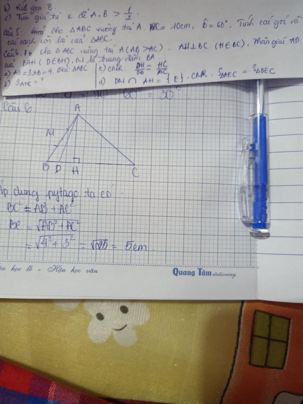 a.Ta có: $BC=\sqrt{AB^2+AC^2}=5$