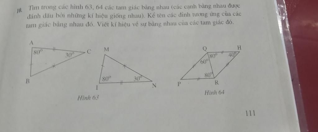 giải thích hình 63: ta viết thế vì ta có các đỉnh tương ứng bằng nhau: A = I; C = N; B = M