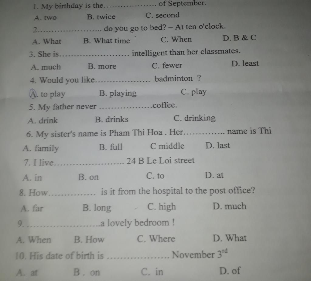 do you go to bed? - At ten o'clock.