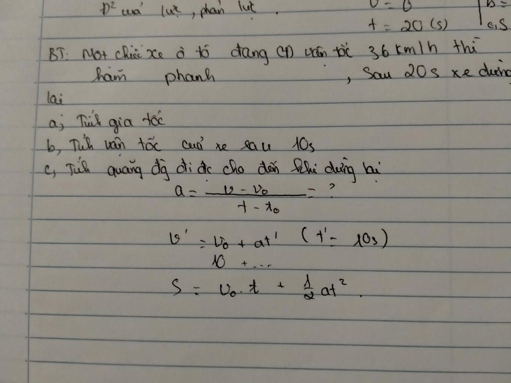 - Chọn chiều dương là chiều chuyển động, gốc thời gian lúc xe hãm phanh