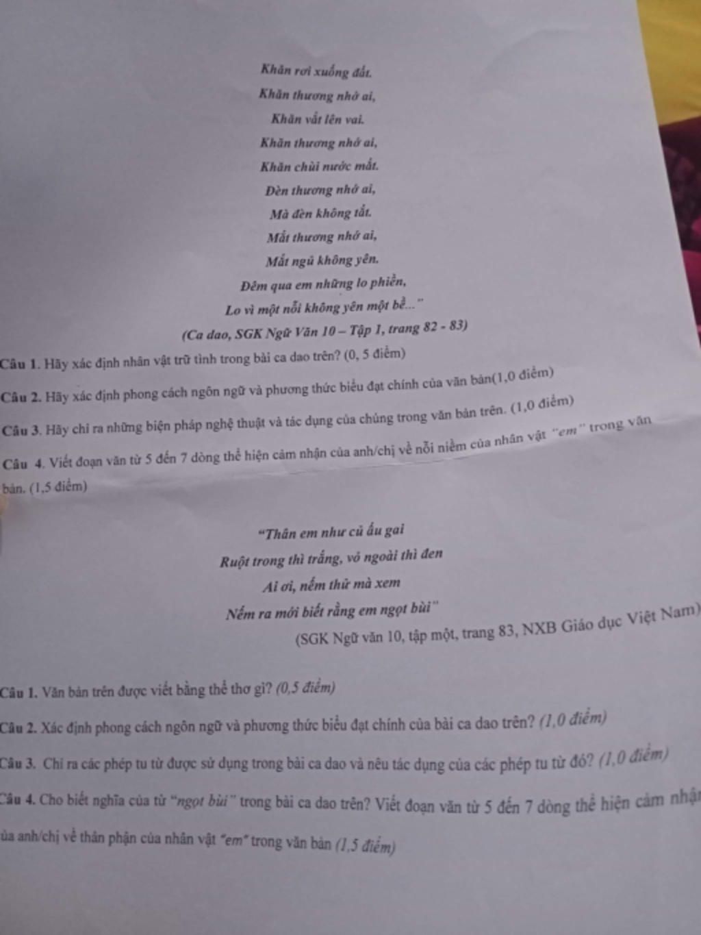 (Ca dao, SGK Ngữ Văn 10 – Tập 1, trang 82 - 83)