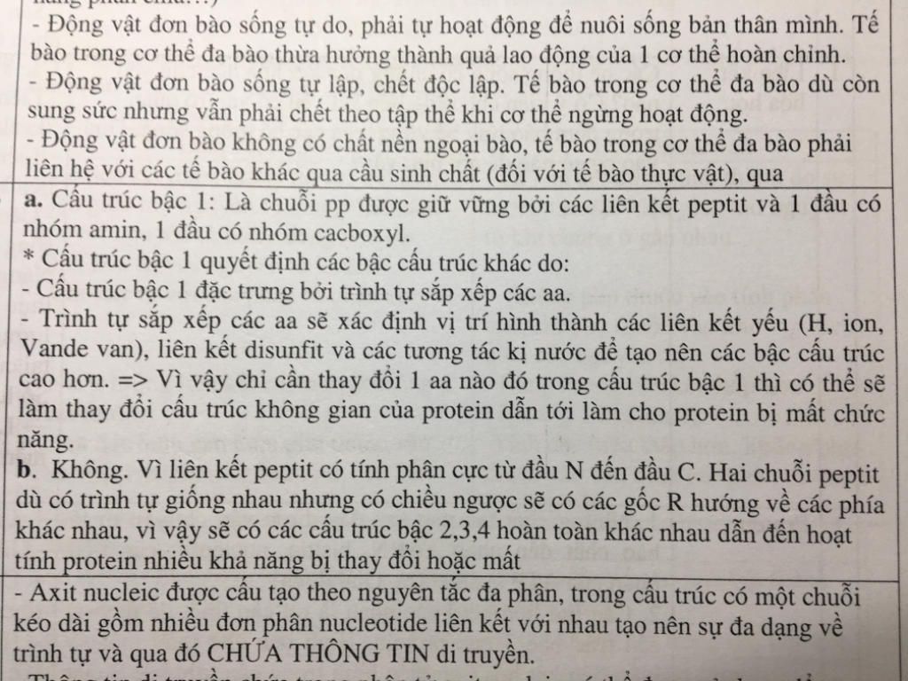 Prôtêin chỉ thực hiện được chức năng ở cấu trúc không gian (cấu trúc bậc 3 hoặc bậc 4).