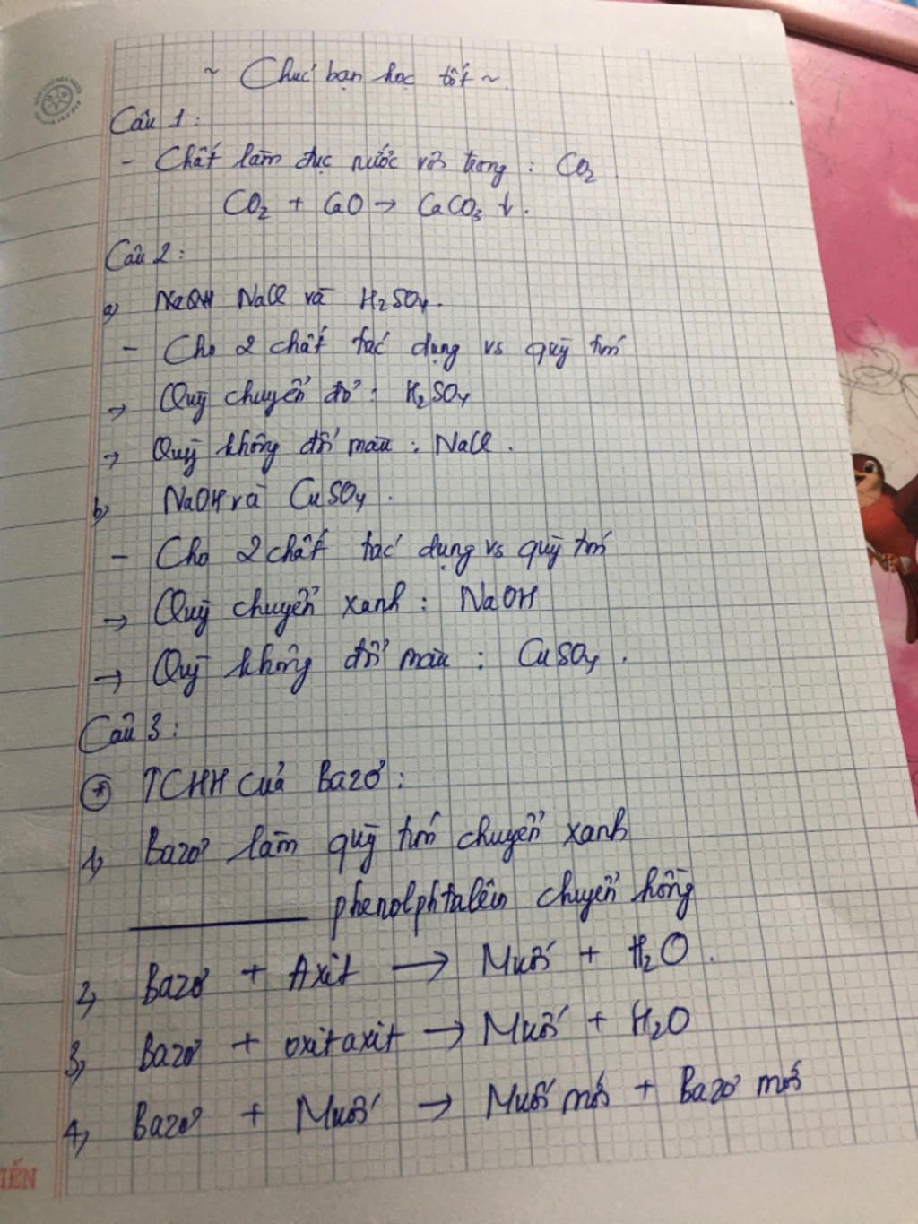 - Dung dịch bazơ làm phenolphthalein không màu đổi sang màu đỏ.