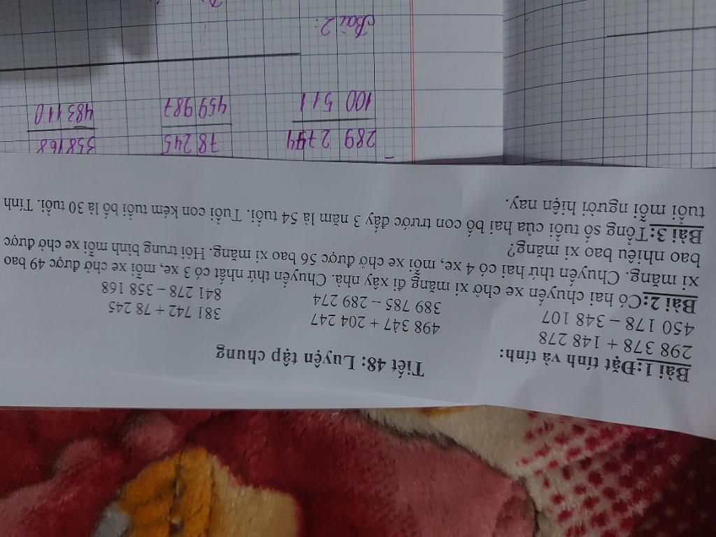 tổng bao xi măng đợt 1: 3× 49 =147 bao