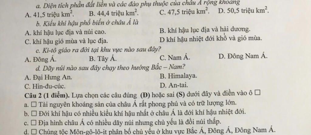 a. Châu Á không tiếp giáp với đại dương nào ?