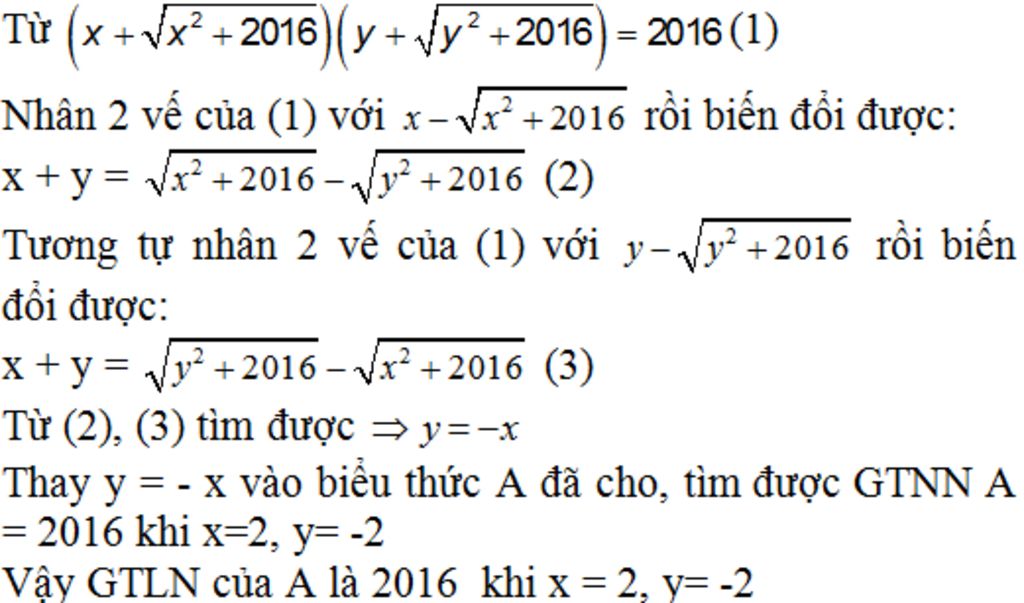 Nhân 2 về của (1) với x– Vx² + 2016 rồi biển đối được: