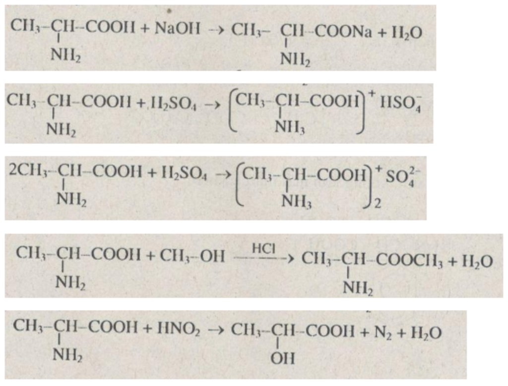 phương trình hóa học: CH CH(NH )COOH + NaOH → CH CH(NH )COONa + H O.
