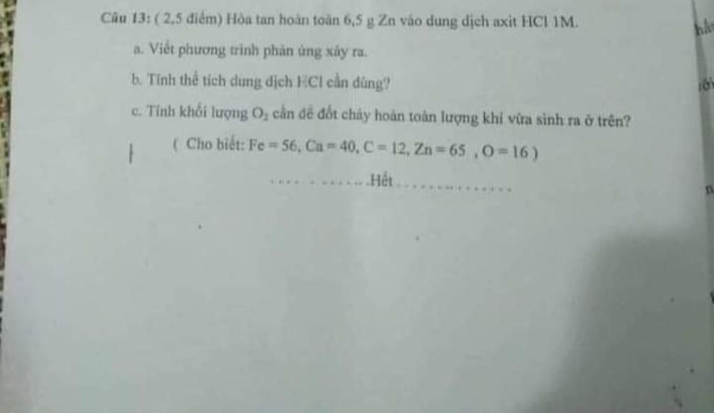 b, V HCl = n HCl : CM HCl = 0.2 : 1 = 0.2 (lít)