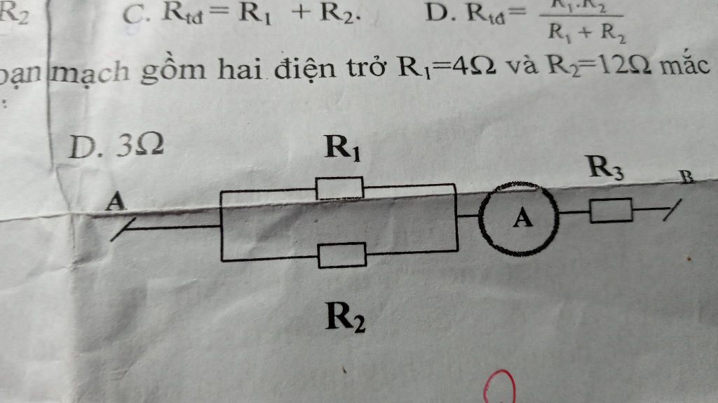 Điện trở tương đương của mạch gồm $R_3nt(R_1//R_2)$
